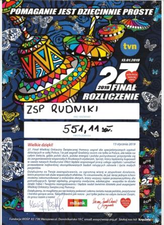 Dziękujemy przedszkolakom, uczniom, rodzicom, nauczycielom oraz pracownikom Zespołu Szkolno – Przedszkolnego im. Jana Pawła II w Rudnikach za przyłączenie się do działań na rzecz Wielkiej Orkiestry Świątecznej Pomocy, której celem jest zakup nowoczesnego sprzętu medycznego dla specjalistycznych szpitali dziecięcych.