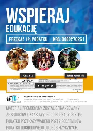 Dzięki współpracy z FUNDACJĄ STUDENCKĄ „MŁODZI –MŁODYM”, która jest organizatorem akcji „1% dla naszej szkoły” oraz życzliwości ze strony Państwa, ludzi dobrej woli, którym los naszej szkoły nie jest obojętny, możliwe jest po raz kolejny pozyskanie środków finansowych na poprawę funkcjonowania naszej placówki oświatowej.