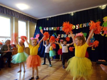 Dziesięcioro dzieci z naszego przedszkola po raz kolejny wzięło udział w Festiwalu Piosenki o Zdrowiu organizowanym przez Państwową Stację Sanitarno – Epidemiologiczną w Częstochowie, pod patronatem prezydenta Częstochowy, pana Krzysztofa Matyjaszczyka. Grupę Starszaków reprezentowali: Tymek Anzorge, Olek Knop, Emilka Kołdon, Maja Kwasek i Wiktoria Urbaniec, a grupę Średniaków: Iga Dubiak, Blanka Halbiniak, Tymek Kot, Kalina Gwiazda – Fluks oraz Wiktoria Rozenberg. W środę, 8 listopada, odbyły się przesłuchania konkursowe w Miejskim Przedszkolu Integracyjnym nr 43 w Częstochowie. Nasze przedszkolaki pięknie zatańczyły i zaśpiewały piosenkę pt. ,,Żyj zdrowo”, do której tekst ułożyły wychowawczynie. Przesłuchania konkursowe będą trwały jeszcze dwa dni, a po nich nastąpi ogłoszenie wyników, na które z niecierpliwością czekamy.